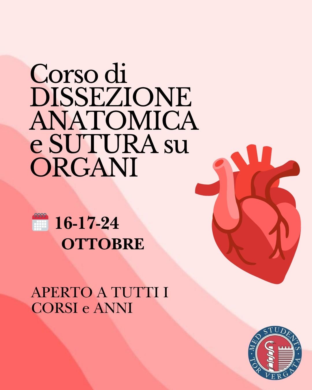 - Corso di dissezione anatomica e sutura organi 16-17-24 ottobre – 0.1 CFU ADO